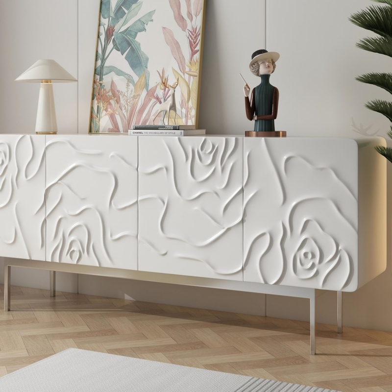 You are here: Home » Products » Cabinet » Sideboard Cabinet » Factory-Customized White Cutlery Cabinet - Stylish Design with Carved Doors, Adjustable Shelves & Ample Storage
